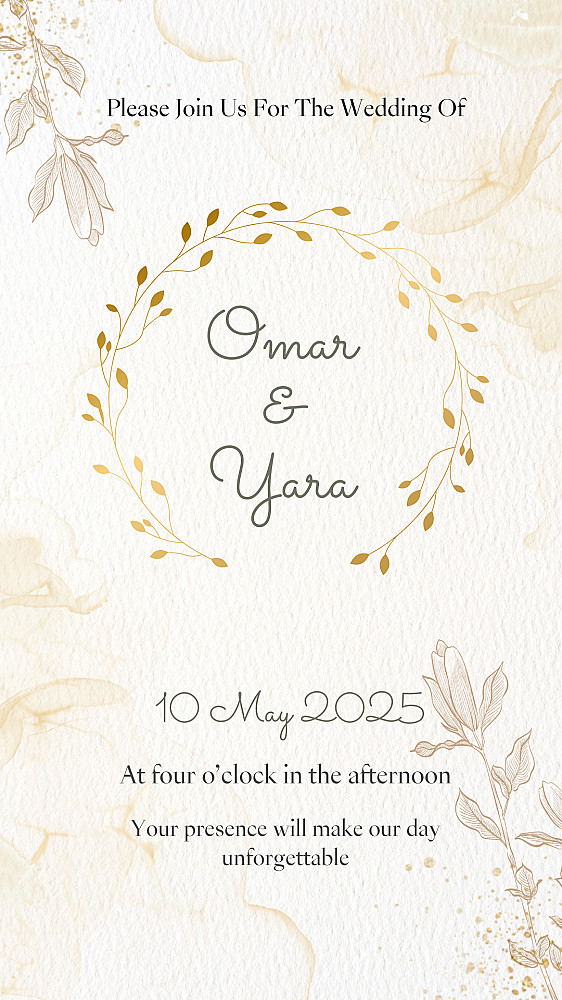 هل تريد دعوة زفاف أو خطوبة أنيقة تعبّر عن ذوقك وتبرز تفاصيل يومك المميز؟