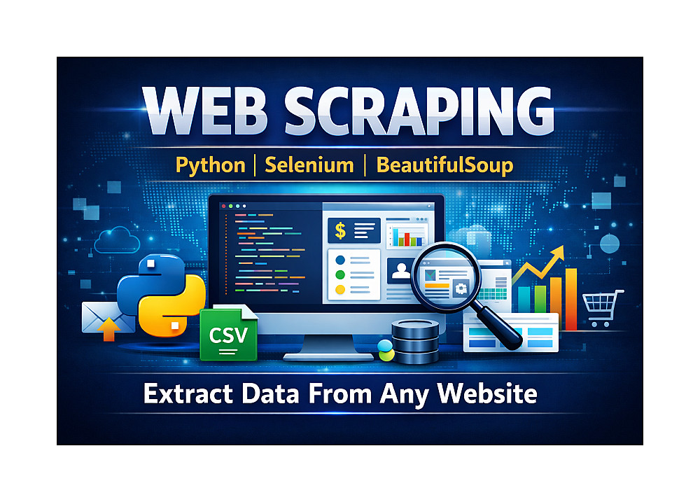 أقدم خدمة Web Scraping باستخدام Python لاستخراج البيانات من أي موقع إلكتروني وتحويلها إلى ملفات منظمة مثل Excel أو CSV أو JSON جاهزة للاستخدام.
