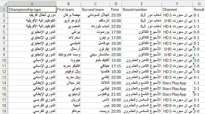 * ملف بيانات منظم بصيغة Excel أو CSV أو JSON