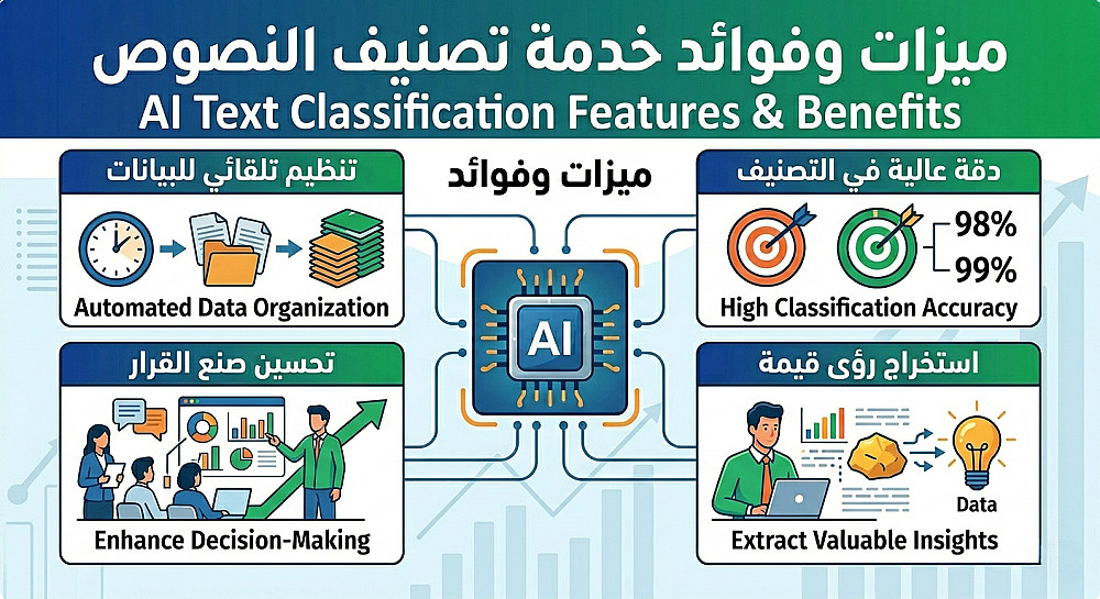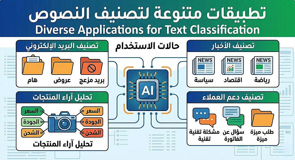 سأقوم ببناء نموذج ذكاء اصطناعي لتصنيف النصوص ورسائل العملاء بدقة