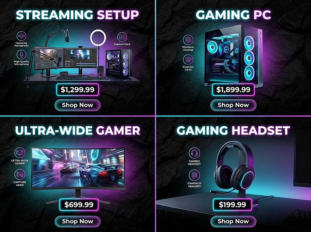 دمج ذكي للمنتجات: وضع منتجاتك في بيئة إبداعية (مثل ستايل الـ Gaming PC في أعمالي).