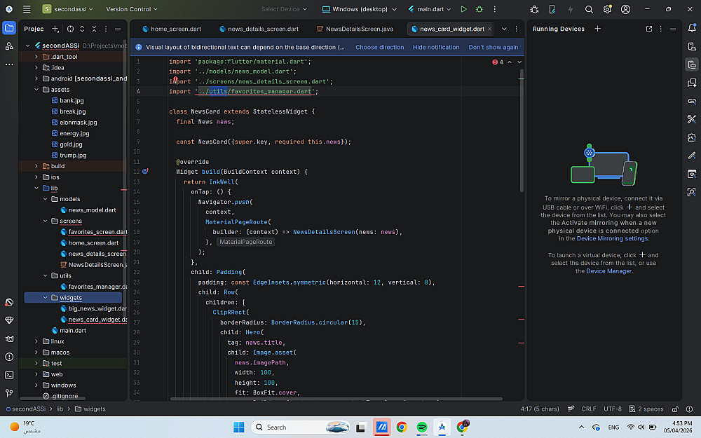 هل تبحث عن تطبيق موبايل احترافي يجمع بين الأداء السلس والتصميم العصري؟ أقدم لك خدمة برمجة تطبيقات الـ Flutter لنظامي الأندرويد والـ iOS بكود برمجى نظيف (Clean Code) ومنظم.