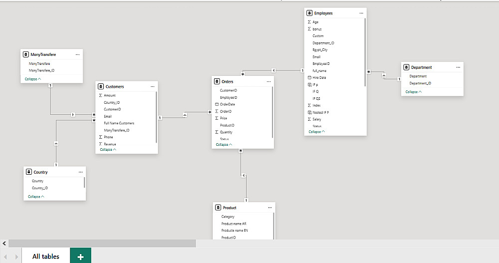 •إنشاء علاقات (Relationships) صحيحة: تحديد وتكوين العلاقات بين الجداول لضمان تدفق البيانات بشكل منطقي ودقيق.