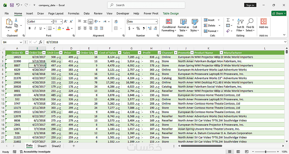 ادخال و تنظيم البيانات