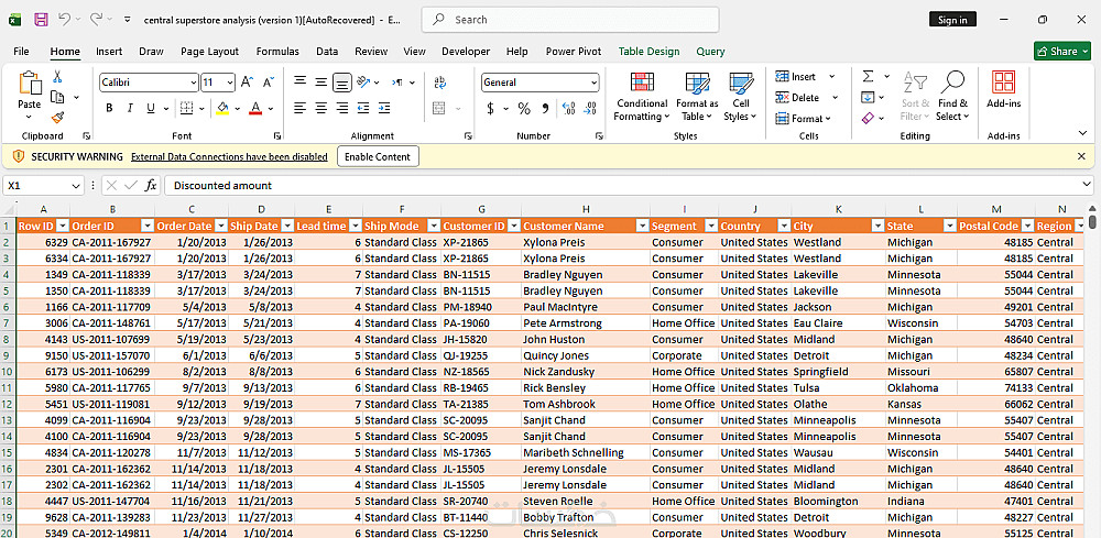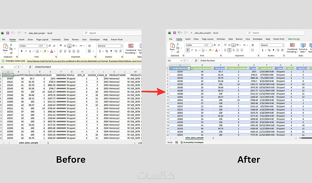 ترتيب البيانات بشكل منطقي (الأعمدة المرتبطة بجانب بعضها) لسهولة القراءة والتحليل.