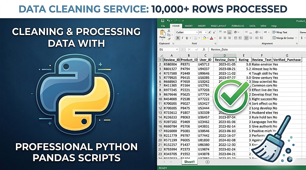 بصفتي متخصص في تحليل البيانات باستخدام Python أقدم لك خدمة تنظيف البيانات ومعالجتها لضمان دقتها وجاهزيتها للتحليل أو العرض سأقوم بتنظيف ملفاتك مهما كان حجمها تماماً كما فعلت في مشاريع سابقة شملت: