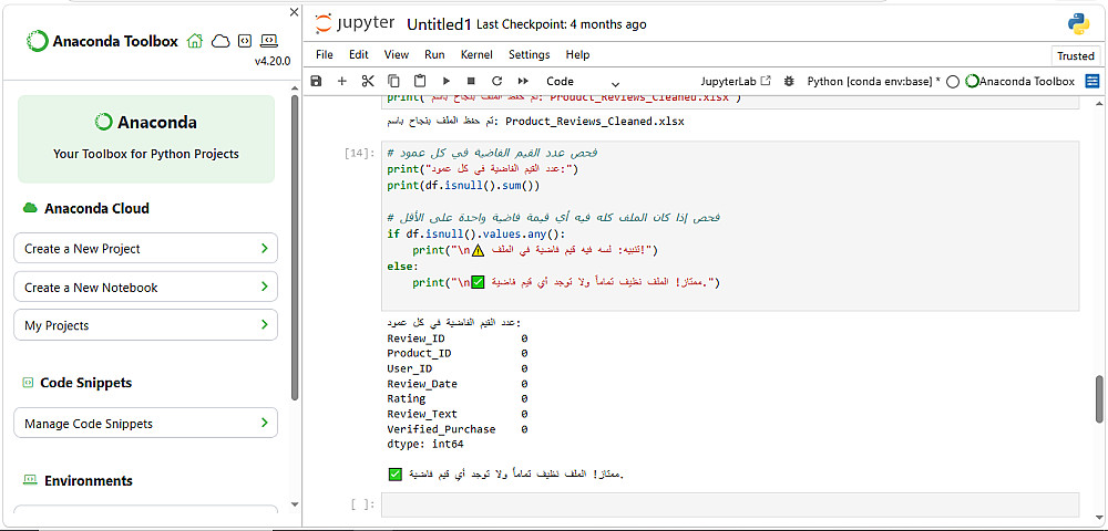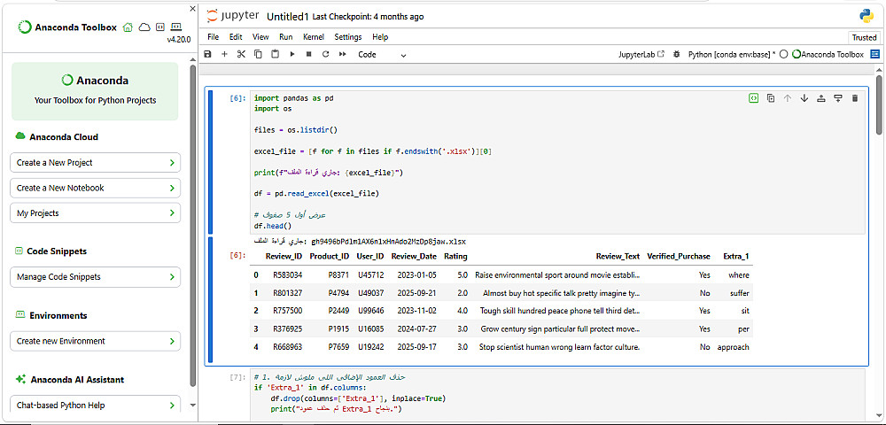 تنظيف المراجعات: التعامل مع بيانات تقييمات المنتجات، وحل مشاكل الترميز (Encoding) لضمان قراءة النصوص العربية والإنجليزية بشكل صحيح