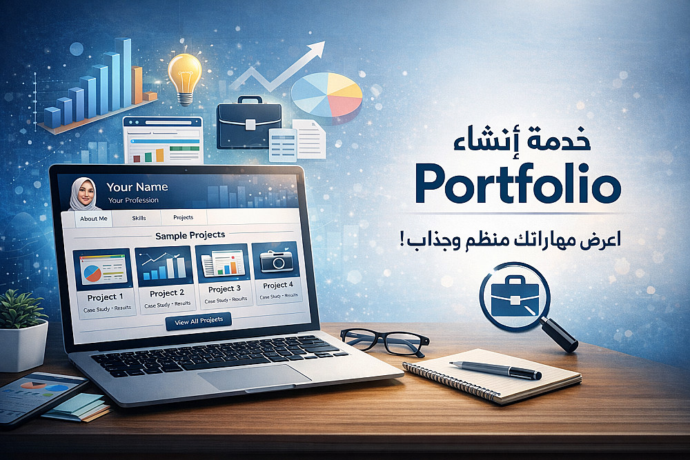 تريد ان تعرض مشاريعك بشكل احترافي و مميز.....هذا يمكن فعله عن طريق انشا Portfolio قوي يعبّر عنك ويخليك مميز وسط المنافسة.