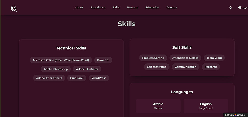 يمكنني انشا Portfolio لك سواء علي Canva او بورتفوليو تفاعلي Interactive Web Portfolio