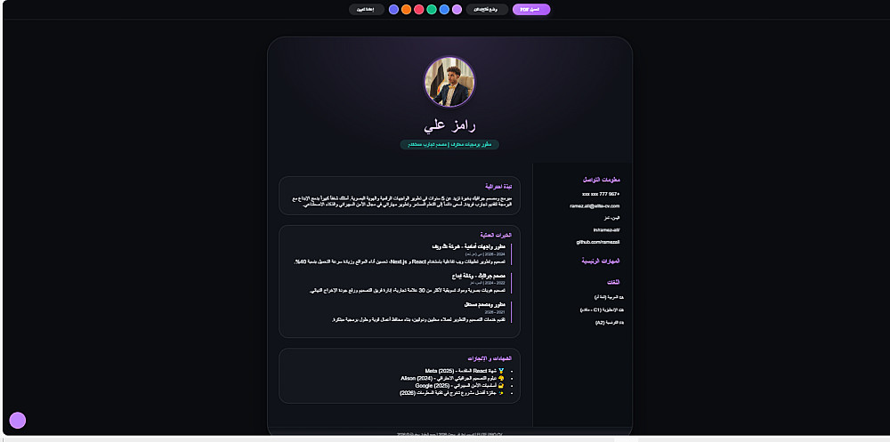 تصدير PDF: زر مخصص لاستخراج السيرة بجودة طباعة عالية.