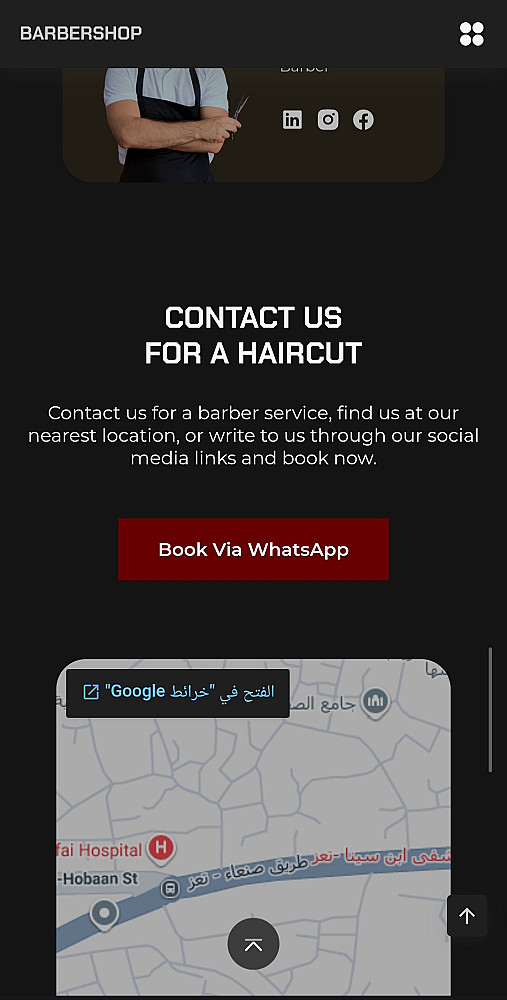 تصميم موقع احترافي لصالون حلاقة مع نظام حجز عبر الواتساب.