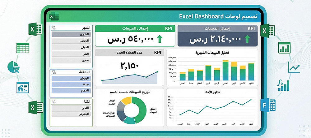 تصميم لوحة تحكم (Dashboard) احترافية وتفاعلية باستخدام Excel