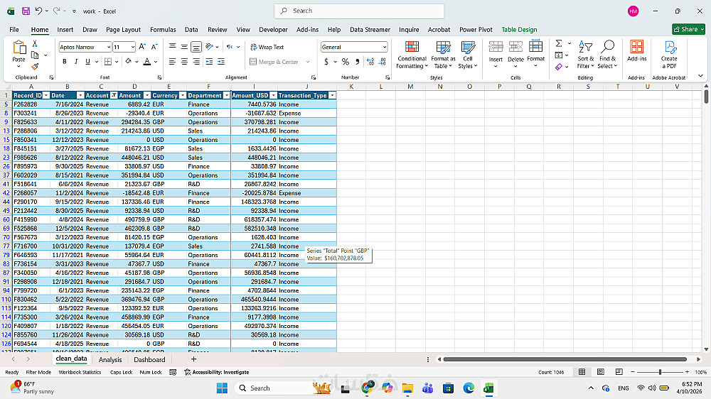 تحليل وتنظيم جدول بيانات واحد (Raw Data) لا يتعدى 500 سطر واستخراج أهم مؤشرين للأداء (KPIs) في شكل رسم بياني بسيط