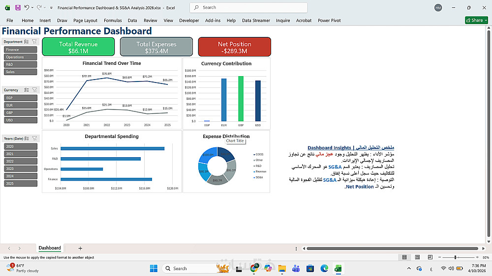 بصفتي متخصص في تحليل وهيكلة البيانات وتطوير النظم الإدارية أقدم لك خدمة تصميم لوحات تحكم (Dashboards) احترافية وتفاعلية بالكامل باستخدام Microsoft Excel