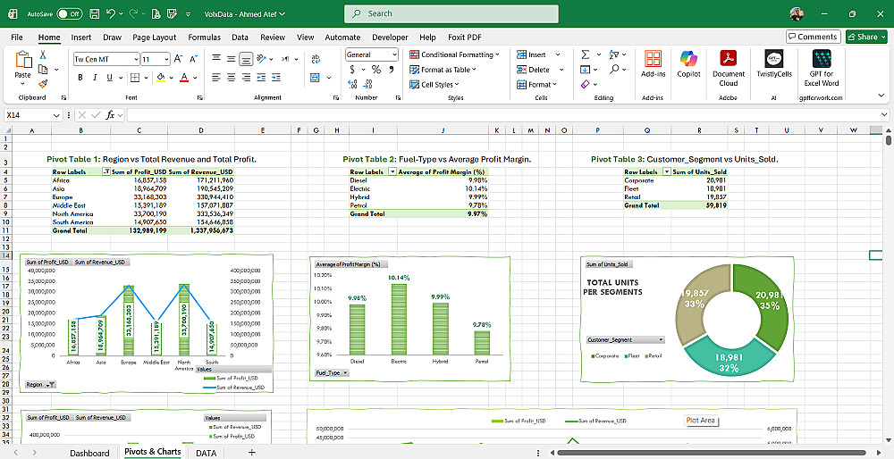 ● إنشاء رسومات بيانية احترافية (Bar / Line / Pie Charts)