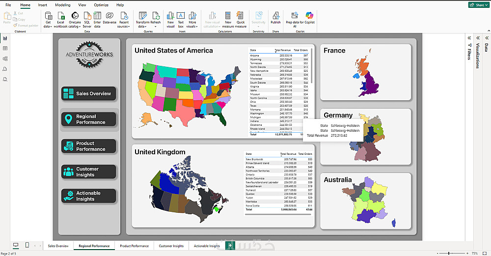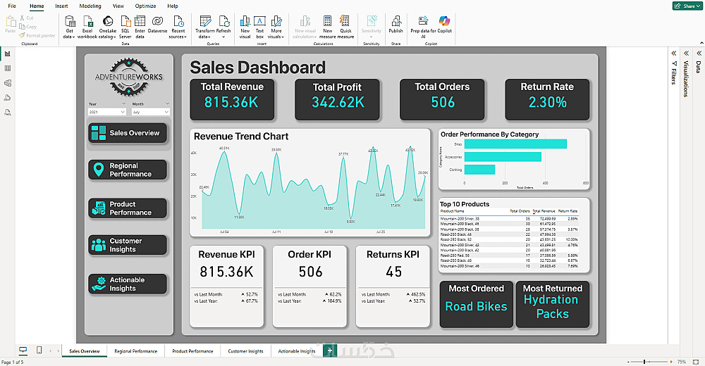 تصميم لوحات تحكم تفاعلية (Dashboards) باستخدام Power BI.