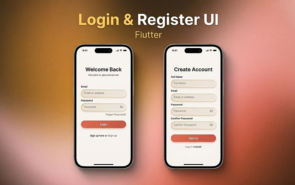 أنا مطور Flutter، سأقوم ببرمجة شاشات Login و Register بشكل كامل (واجهة + منطق برمجي).