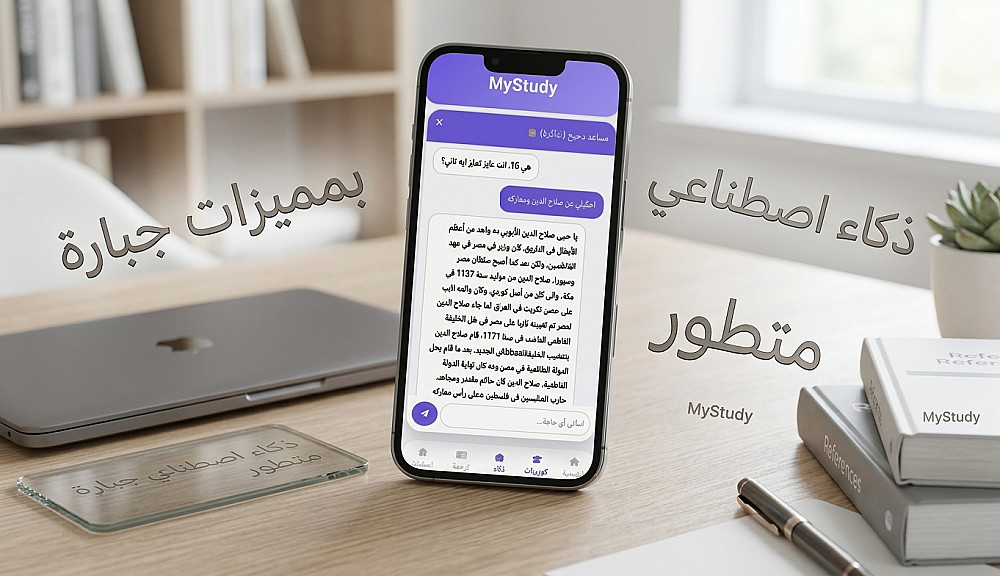 ملاحظه (يمكنك الحصول على نسخة من تطبيق MyStudy Pro كما هو موضح، كما يمكنني أيضاً تطوير برامج مخصصة بالذكاء الاصطناعي بناءً على فكرتك الخاصة، أو إجراء تعديلات برمجية كاملة على هذا التطبيق لتناسب احتياجاتك الشخصية) التطبيق المعروض هو كامل وجاهز للعمل لكن يمكن اضافت عليه اي تعديلات من تطويرات الخدمه
