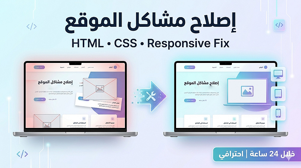 أنا مطور Front-End متخصص في إصلاح مشاكل HTML وCSS وتحسين التصميمات وجعل المواقع تعمل بشكل احترافي ومتجاوب 100% على جميع الشاشات.