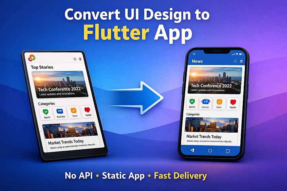 تحويل تصميم (UI) إلى تطبيق Flutter بدون API (Widget فقط)