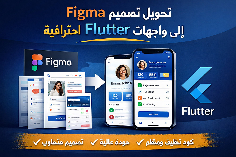 سأقوم بتحويل أي تصميم من برنامج Figma إلى كود Flutter نظيف باستخدام Widgets فقط، بحيث تكون الشاشة مطابقة للتصميم بنسبة عالية.