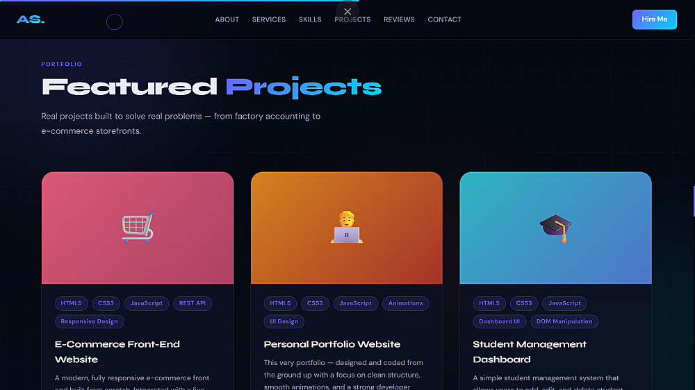 - أقسام منظمة (Hero - About - Services - Projects - Contact)