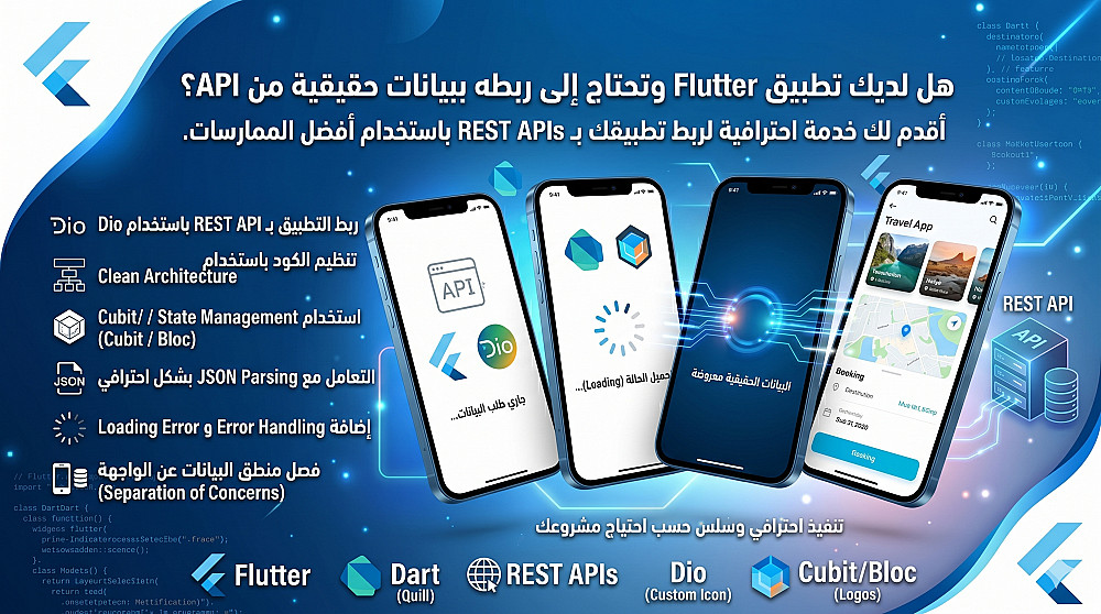 هل لديك تطبيق Flutter وتحتاج إلى ربطه ببيانات حقيقية من API؟