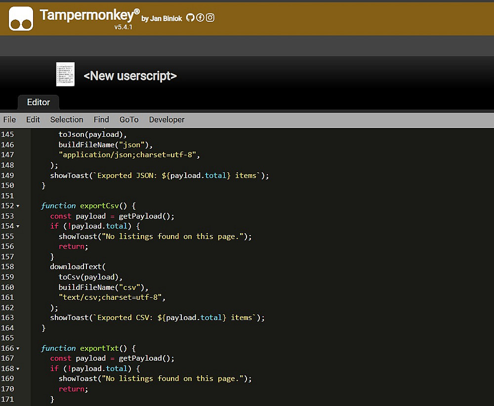 أقوم بتطوير Script أو إضافة مخصصة للمتصفح عبر TamperMonkey لاستخراج البيانات من صفحة ويب واحدة تكون معلوماتها ظاهرة بالكامل، بطريقة عملية ومنظمة تقلّل عليك العمل اليدوي المتكرر بدل النقل والنسخ سطرًا بسطر.