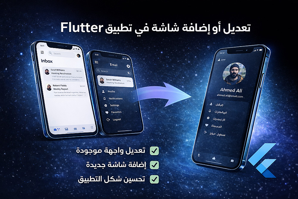 تعديل أو إضافة شاشة في تطبيق Flutter