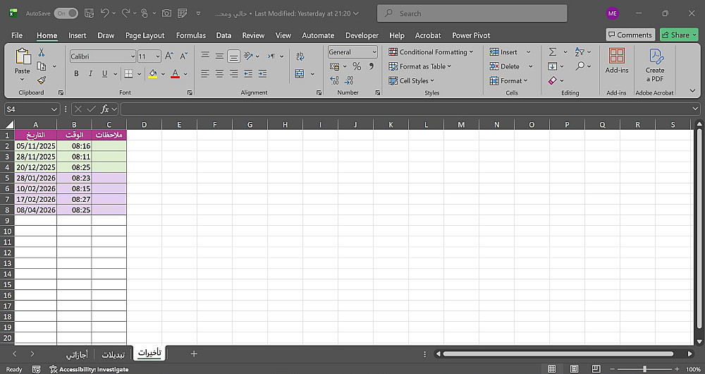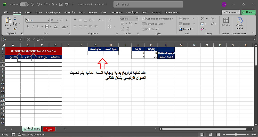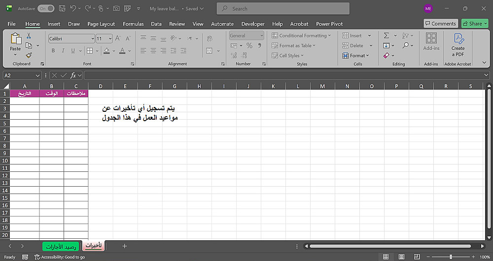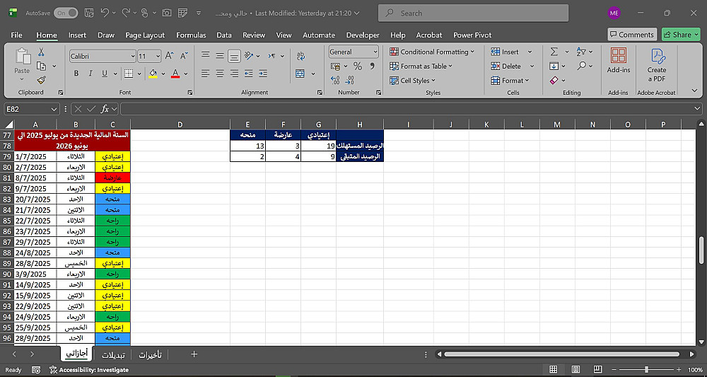 ملف إكسل جاهز ومصمم باحترافية لتسجيل الإجازات (الاعتيادية والعارضة).