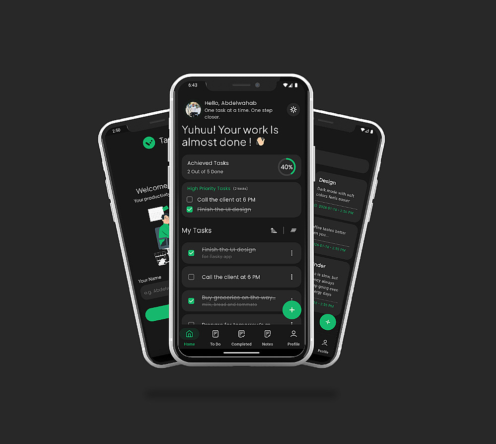 أقوم بتحويل تصميمك من Figma إلى كود Flutter احترافي بنسبة مطابقة 100% (pixel perfect)، مع دعم كامل للوضع الداكن والفاتح، وتصميم متجاوب يتكيف تلقائياً مع جميع أحجام الشاشات على أنظمة Android وiOS. يتم تسليم الكود نظيفاً ومنظماً، سهل القراءة والتعديل والصيانة، وجاهزاً للربط مع الخلفية أو خدمات Firebase في أي وقت لاحق.
