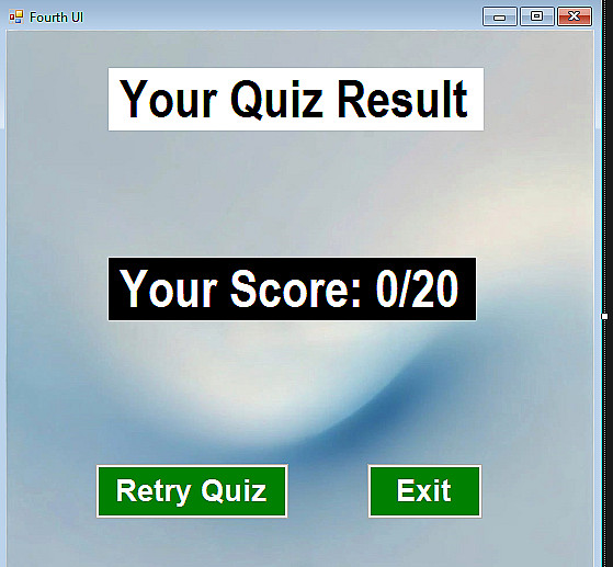 يوجد عرض للنتيجة Score في اخر الاختبار