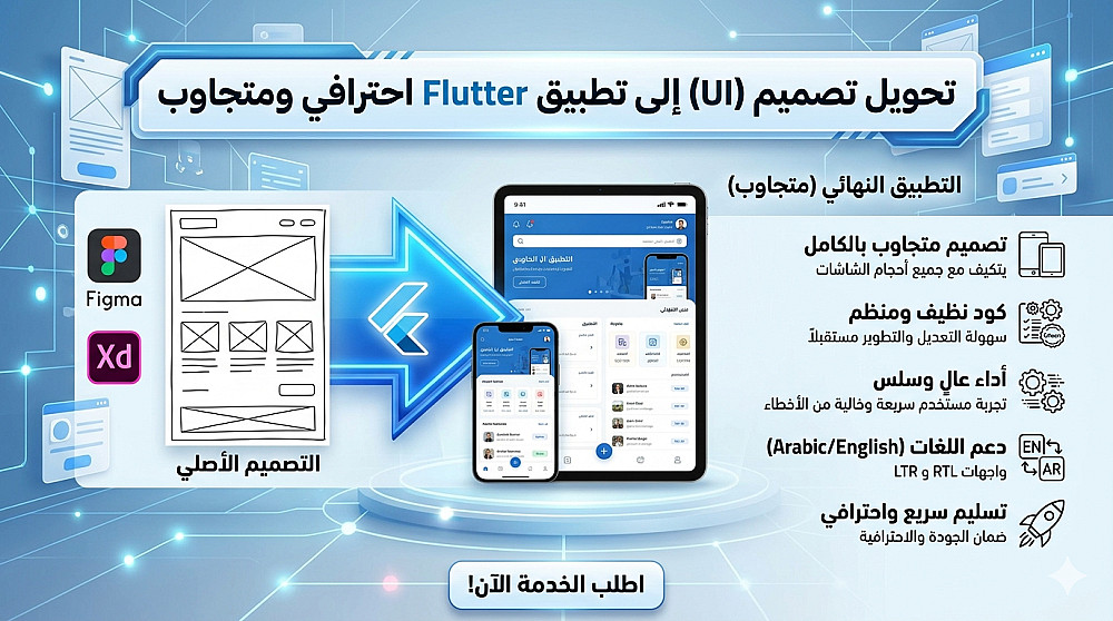 تحويل تصميم UI إلى تطبيق Flutter احترافي ومتجاوب