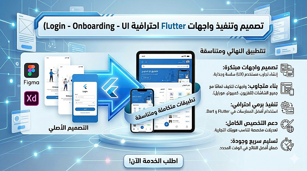 تصميم وتنفيذ واجهات Flutter احترافية لتطبيقات الموبايل
