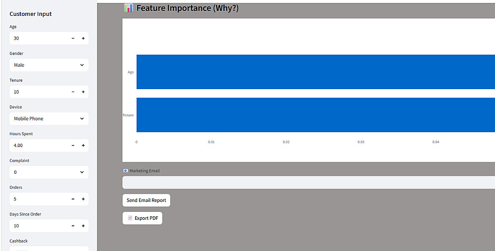 الخدمه تقدم تنبا بي نسبه ترك العميل للموقع بنسبه اد اي مثلا نسبه عاليه او متوسطه او قليله ومن خلال هذا التنبا المودل بيجهز تقارير من خلال تحليل الداتا سبب النسبه وبيقدم اقتراحات تفيد الموقع وتجعل تجول العميل في الموقع فتره اطول والتفاعل يزيد