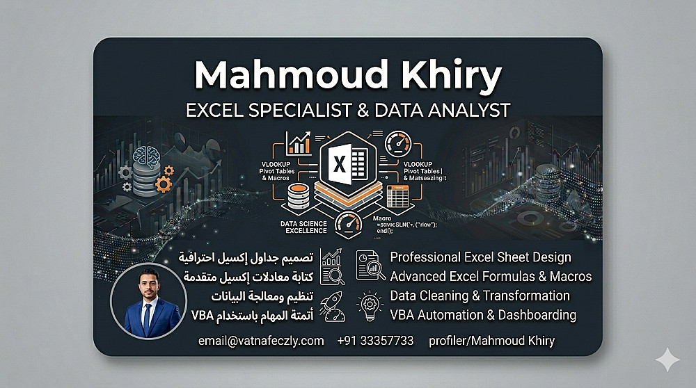 بصفتي محلل بيانات، أقدم لك خدمة احترافية في Microsoft Excel تشمل: