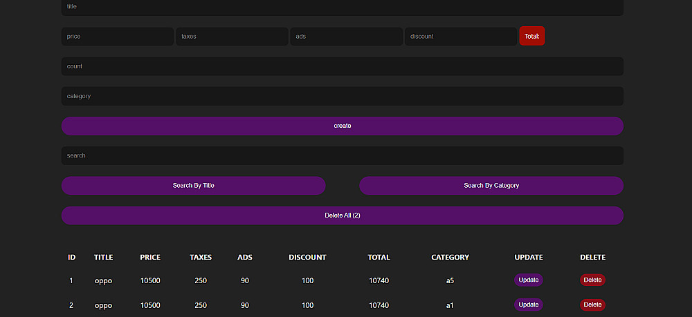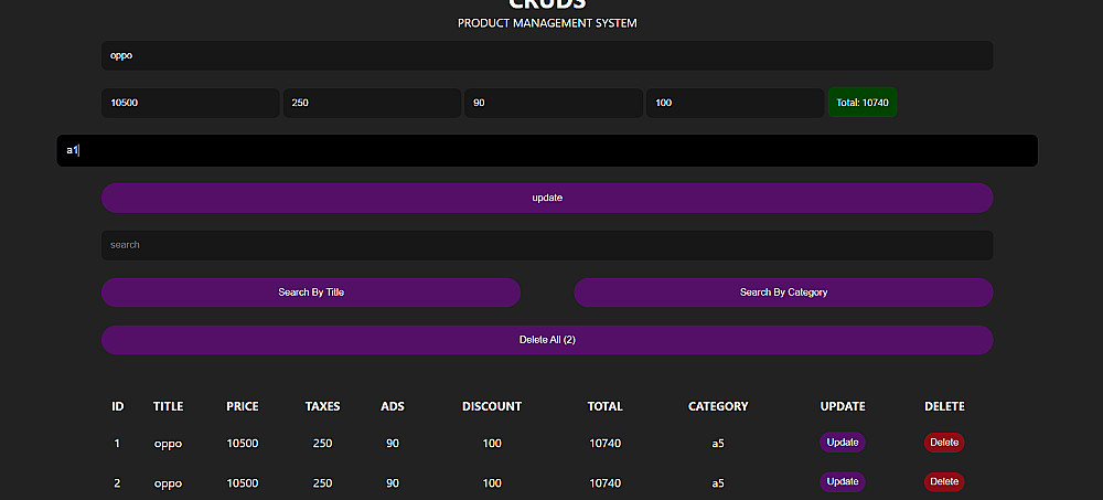 سأقوم ببناء نظام CRUD احترافي بلغة ( JavaScript ) يشمل: