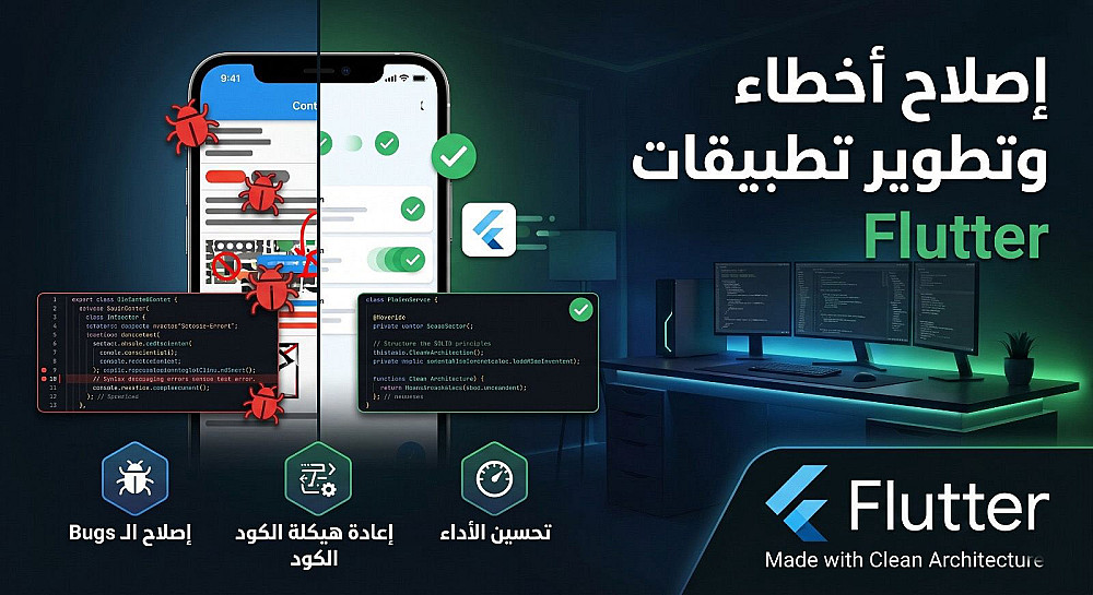إصلاح أخطاء وتطوير تطبيقات Flutter الحالية (Maintenance & Debugging).