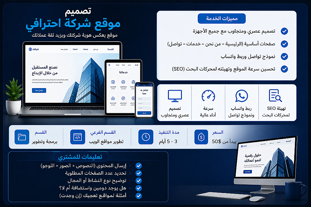 تصميم وتطوير موقع شركة احترافي سريع ومتجاوب