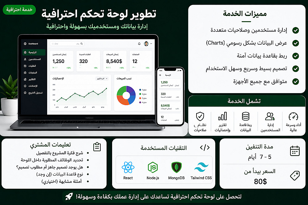 إذا كنت تحتاج نظام لإدارة بياناتك أو عملائك، أوفر لك لوحة تحكم سهلة الاستخدام وقوية.