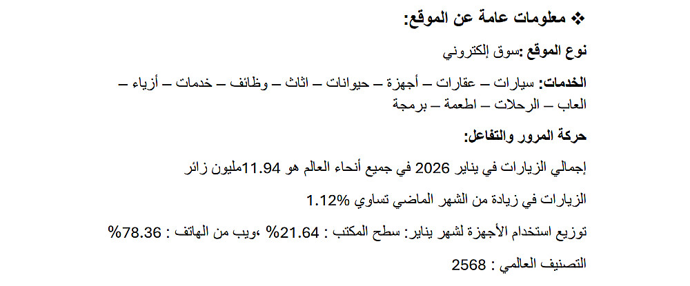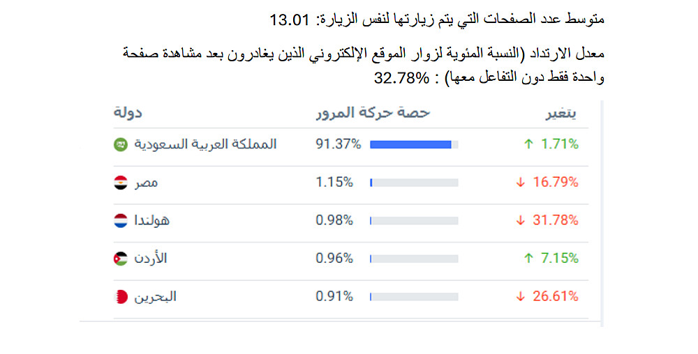 - عدد الزيارات الشهرية (تقديري)