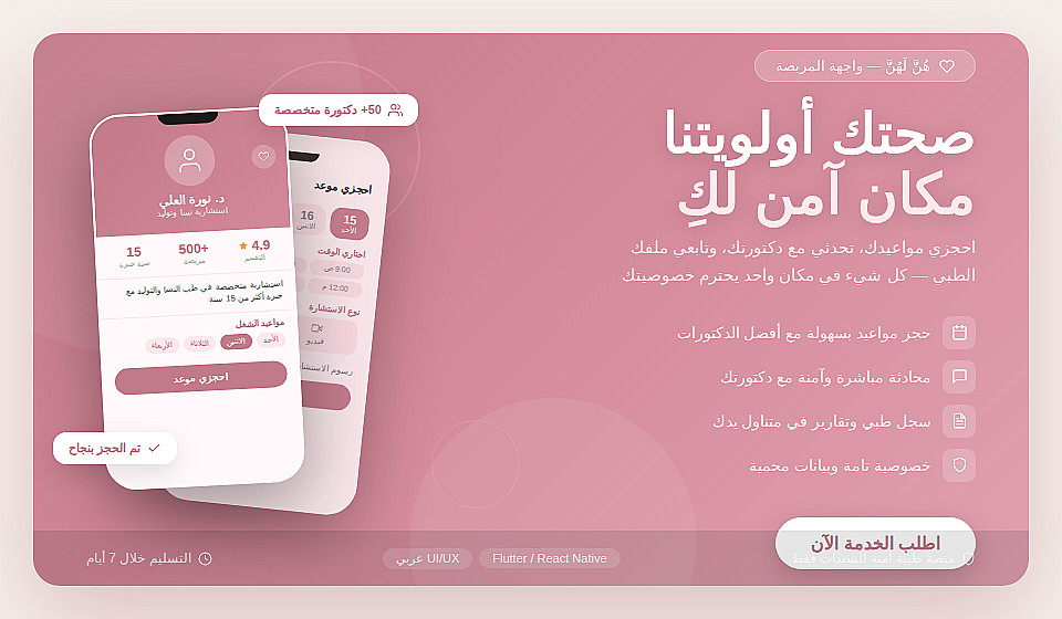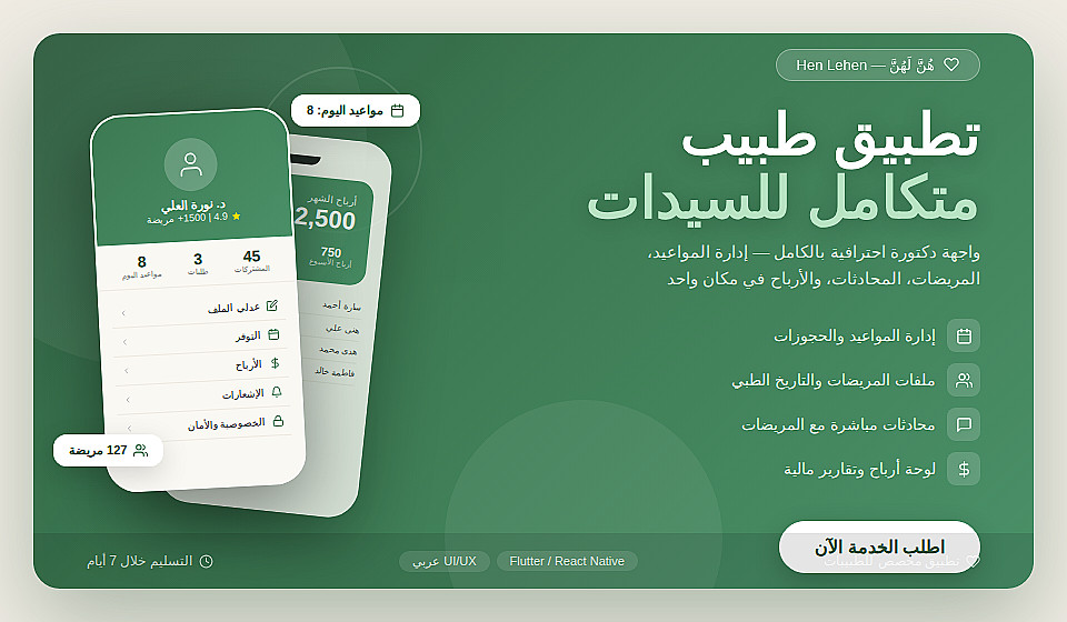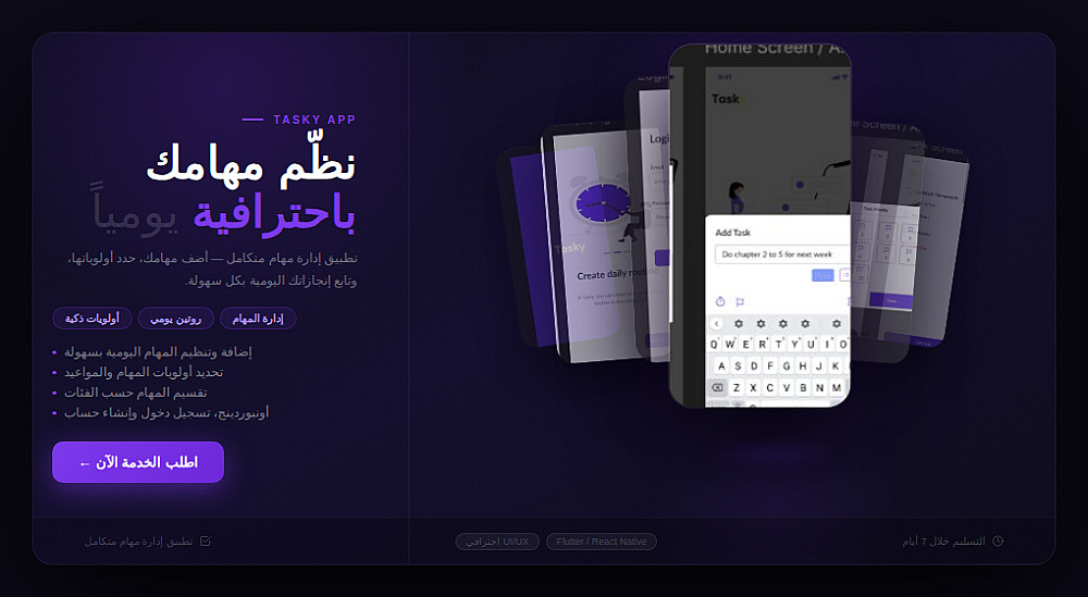 أقوم بتحويل التصاميم إلى تطبيق Flutter بجودة عالية مع الالتزام الكامل بالتفاصيل والتناسق بين العناصر.