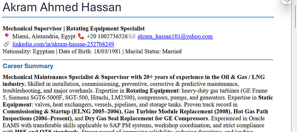 أقدم لك خدمة إنشاء وتنسيق سيرة ذاتية (CV) احترافية متوافقة مع أنظمة تتبع المتقدمين (ATS) التي تستخدمها الشركات لفرز السير الذاتية.