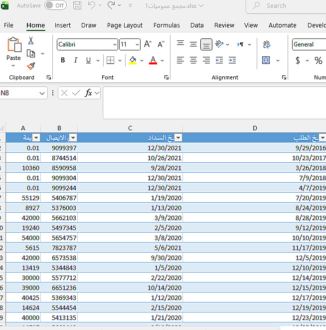 تنسيق وترتيب البيانات داخل ملف Excel