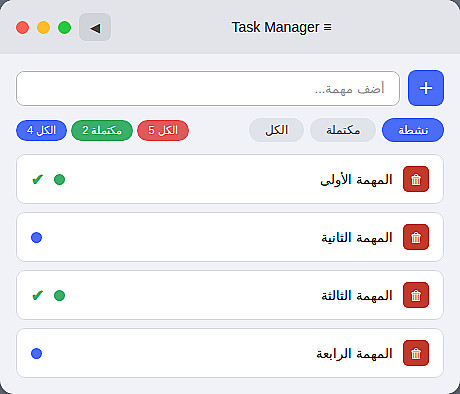 3)فلترة المهام (الكل - مكتملة - نشطة)