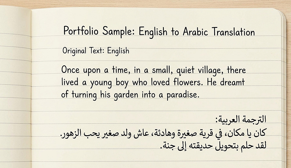 مترجمة شغوفة، أقدم خدمات ترجمة دقيقة من الإنجليزية للعربية والعكس، مع الالتزام التام بالمواعيد والجودة العالية."
