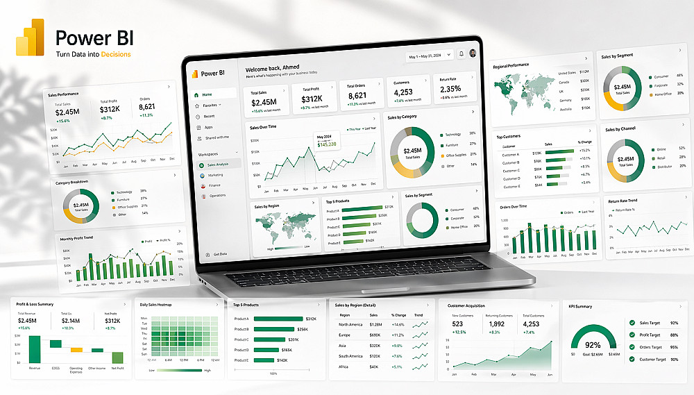 تصميم داشبورد احترافي تفاعلي عبر Power BI + تقارير تحليل بيانات