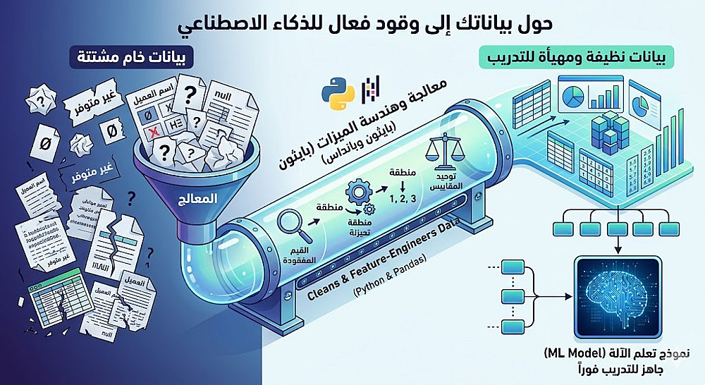 معالجة وتنظيف البيانات (Data Preprocessing) وتجهيزها للذكاء الاصطناعي.