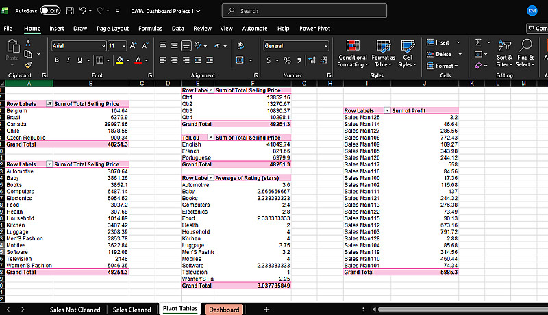 تصنيف المنتجات واللغات: دراسة حجم المبيعات عبر فئات متنوعة (مثل الإلكترونيات، الموضة، والكتب) وتحليل التوزيع حسب لغة العميل.
