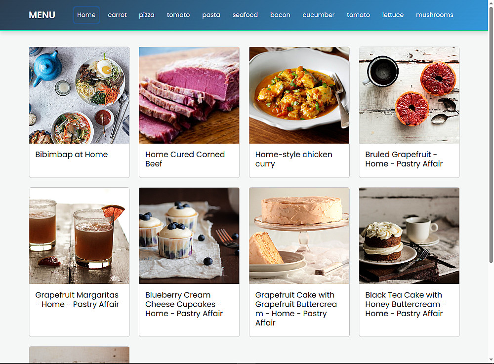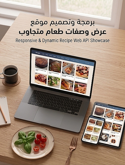 برمجة وتصميم موقع عرض وصفات طعام متجاوب واحترافي.